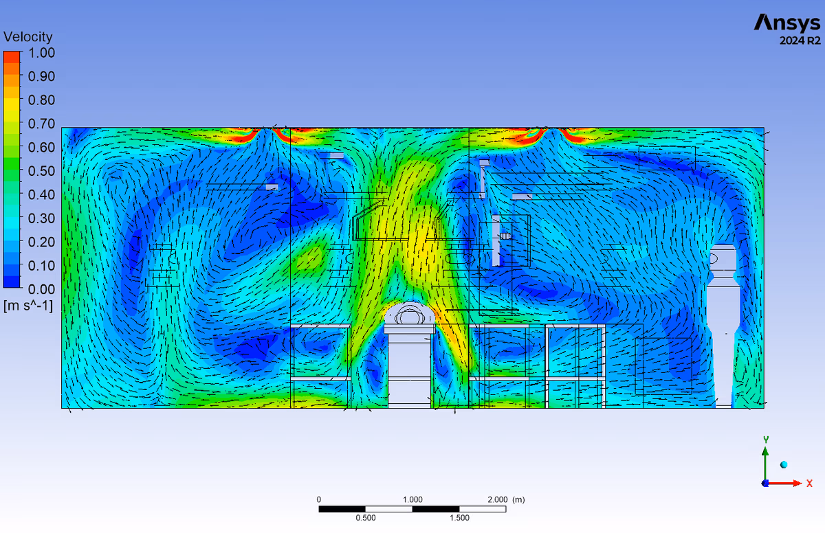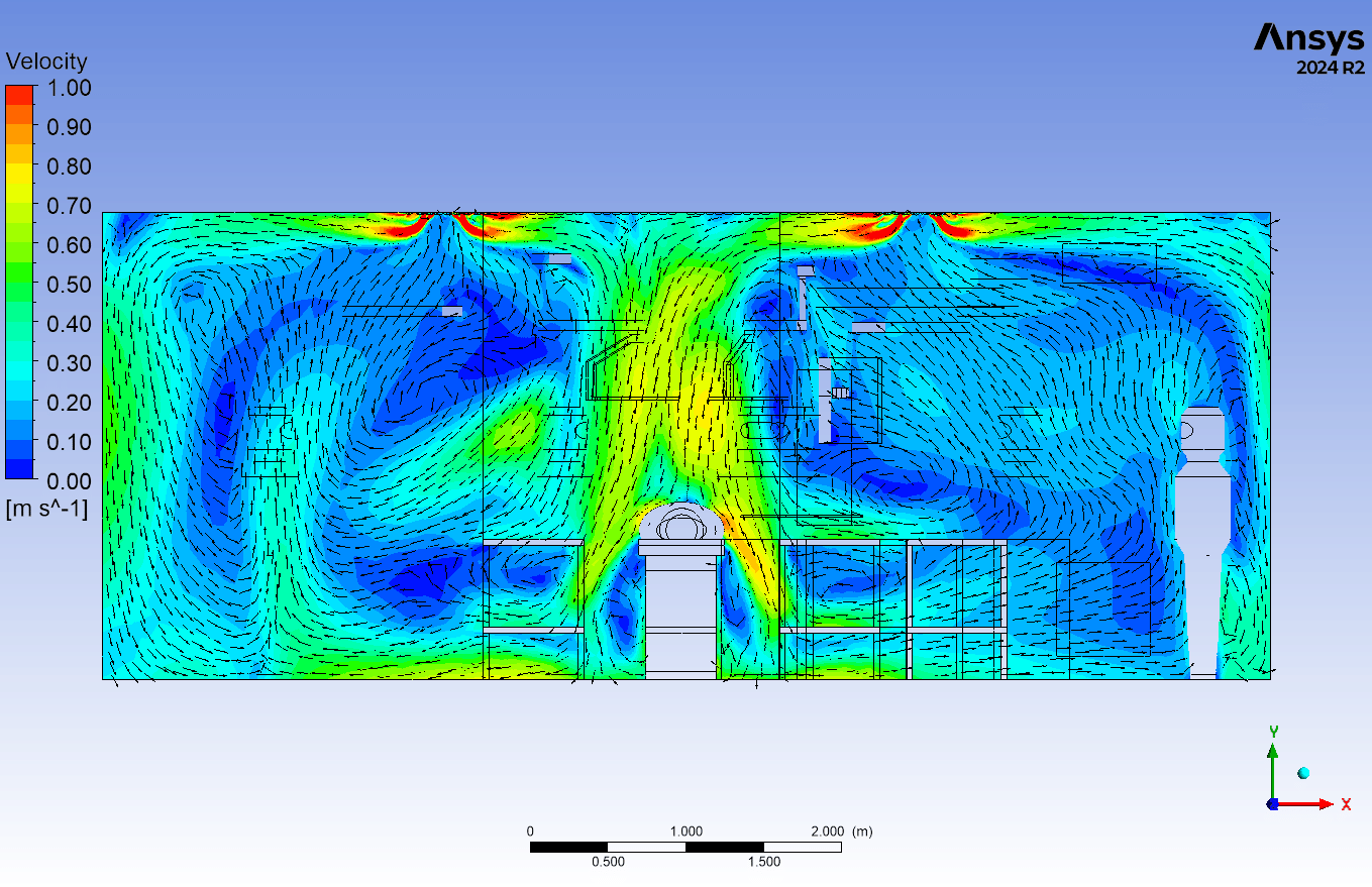 It works a bit like a CT scan for air: rather than observing only from the outside, we can see inside the airflow how it circulates around a patient’s bed, changes when a door opens or behaves when the ventilation system is switched on. Just as medical imaging helps doctors make a diagnosis without invasive procedures, CFD allows engineers to “look inside” the behaviour of air or fluids without the need to build physical prototypes. This allows us to anticipate issues such as poorly ventilated areas or high-risk zones for infection, and to make more informed, safer design decisions early on.